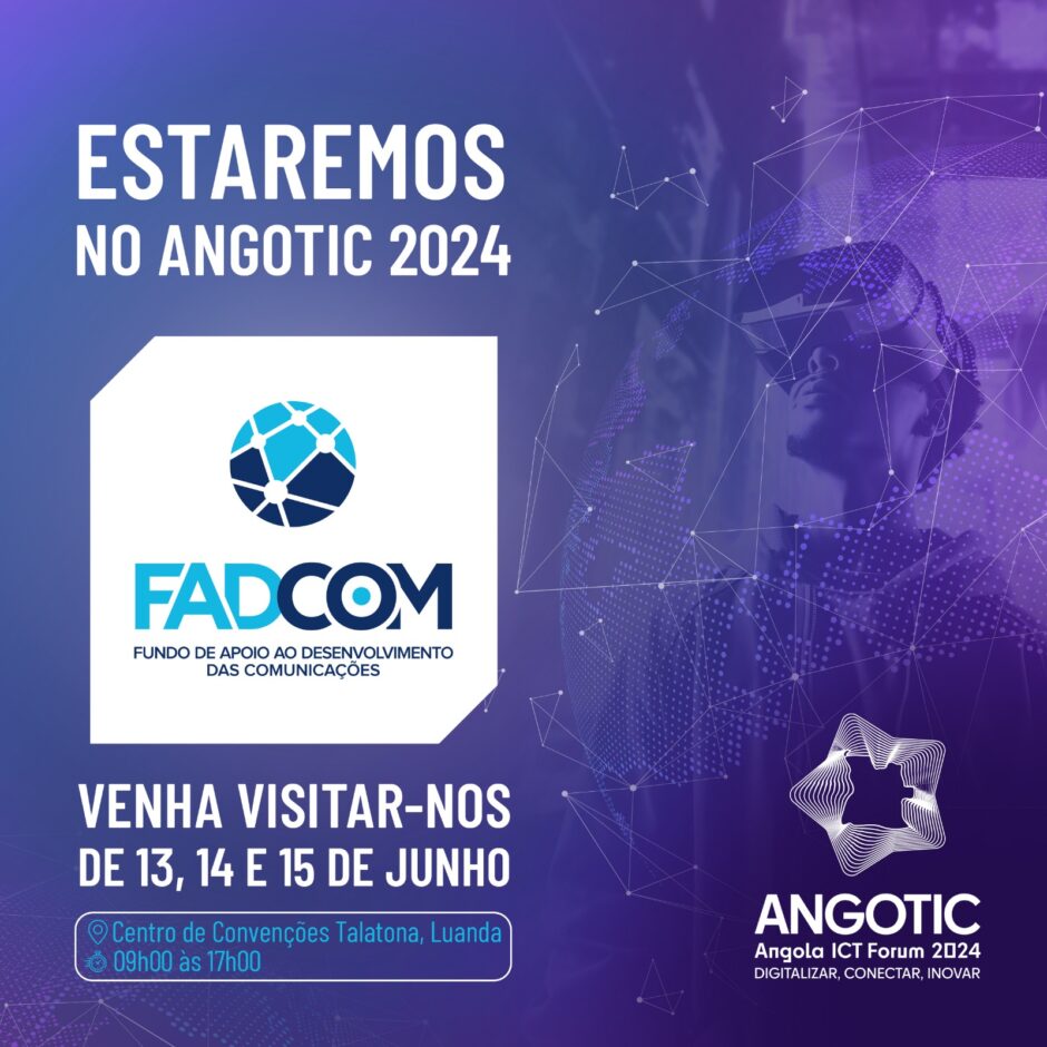 É com grande entusiasmo que anunciamos a participação do FADCOM no ANGOTIC 2024 – Fórum Internacional de Tecnologias de Informação e Comunicação de Angola. Este evento de renome global, promovido pelo Governo de Angola através do Ministério das Telecomunicações, Tecnologias de Informação e Comunicação Social, será realizado nos dias 13, 14 e 15 de junho de 2024.